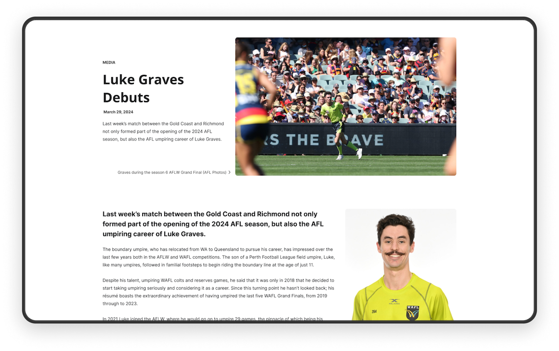 The AFL Umpires Association (AFLUA) recognised the need for a website upgrade. Engagement with new umpires was low, the membership portal wasn’t functioning optimally, and content management was more time-consuming than necessary.
